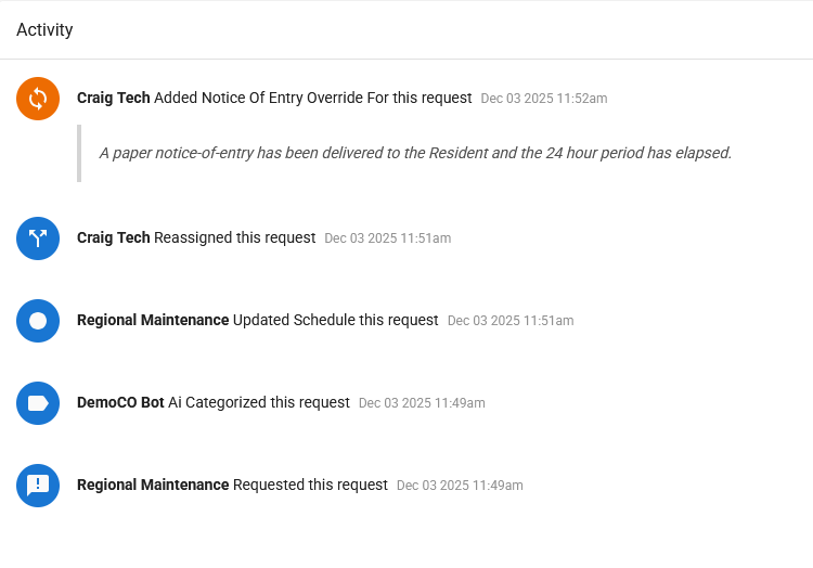 - Send electronic entry notices automatically to all opted-in residents in the affected unit.
